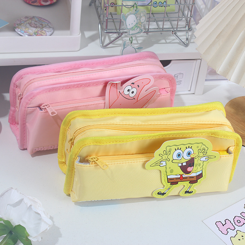 スポンジボブ多層鉛筆バッグ漫画スタイル小学生中学生文具鉛筆収納大容量ペンボックス男性と女性用