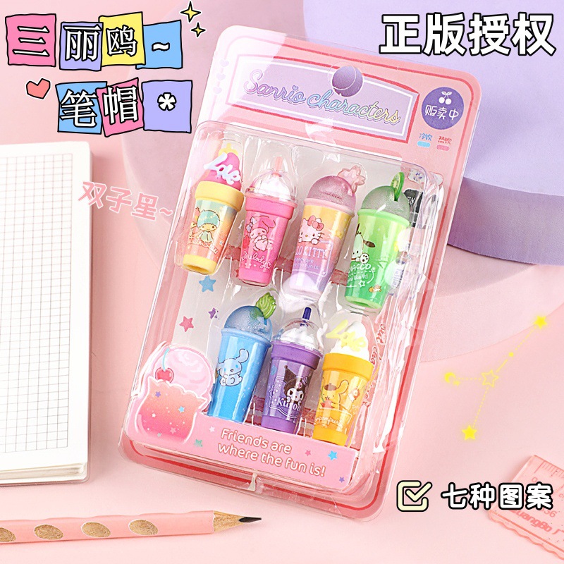 サンリオ消しゴム かわいいペンキャップ消しゴム 7個入り 漫画アイスクリームペンキャップ型 学生用宿題消しゴム