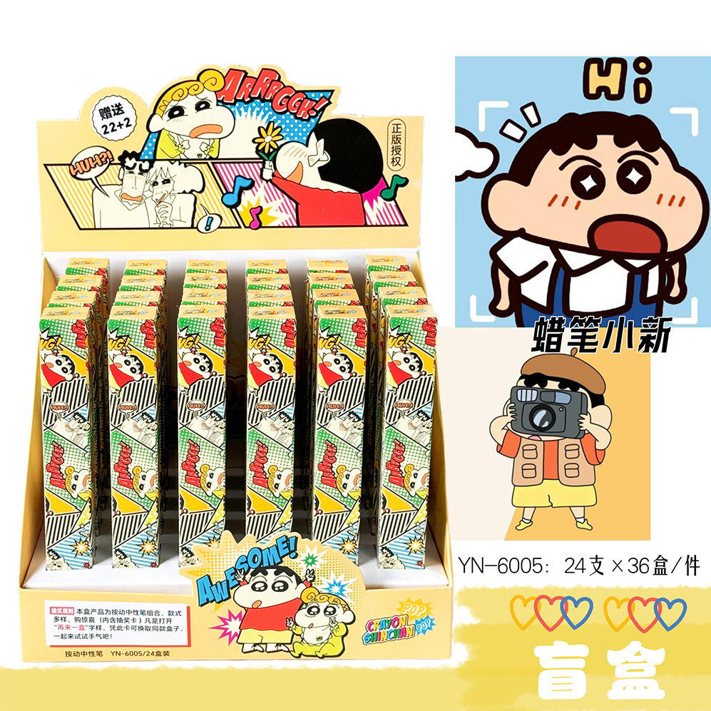 正規版ライセンスクレヨンしんちゃんブラインドボックス押し中性ペン学習作業試験黒サインペン
