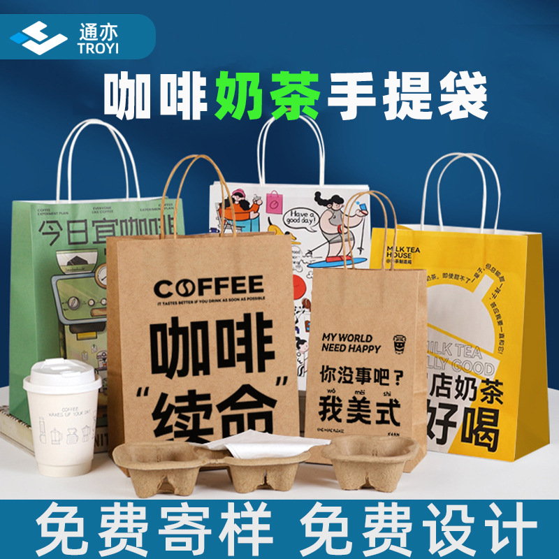 コーヒーミルクティー手提げ袋飲食焙煎専用包装袋使い捨て手提げ袋クラフト紙袋にロゴを印刷する