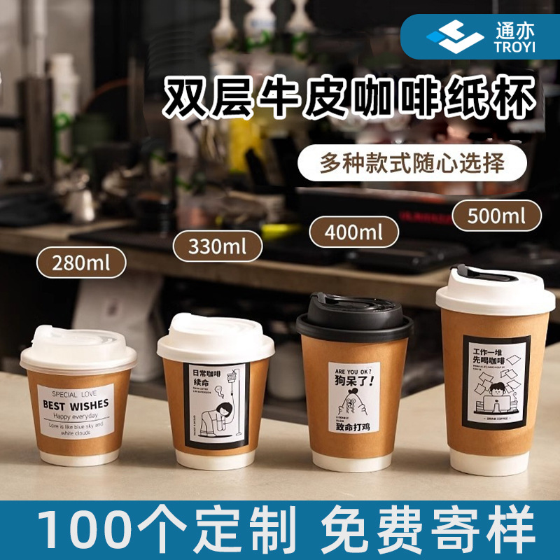 蓋付き使い捨てコーヒー紙コップ、二重層牛革商業用包装カップ、豆乳ホットドリンクミルクティーカップ、厚くて火傷防止