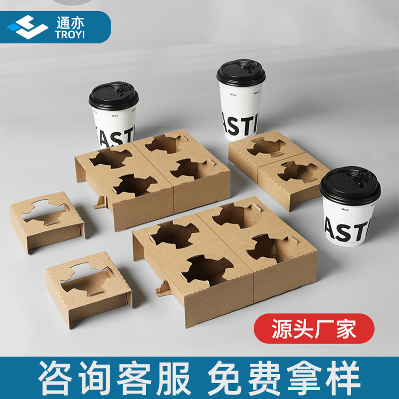 使い捨て牛革段ボール紙カップホルダー、コーヒーミルクティー紙カップテイクアウト包装ベース、カップホルダー、2カップ、4カップホルダー