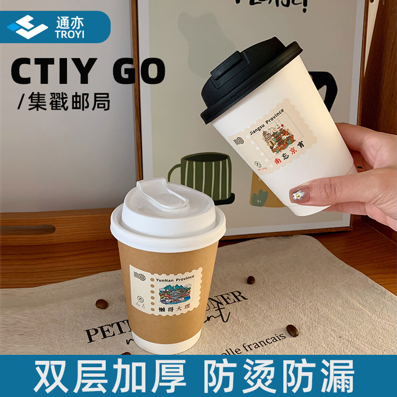 Ctiy go使い捨てコーヒーカップ蓋付き厚手紙コップ業務用二層牛革コーヒーカップミルクティー豆乳