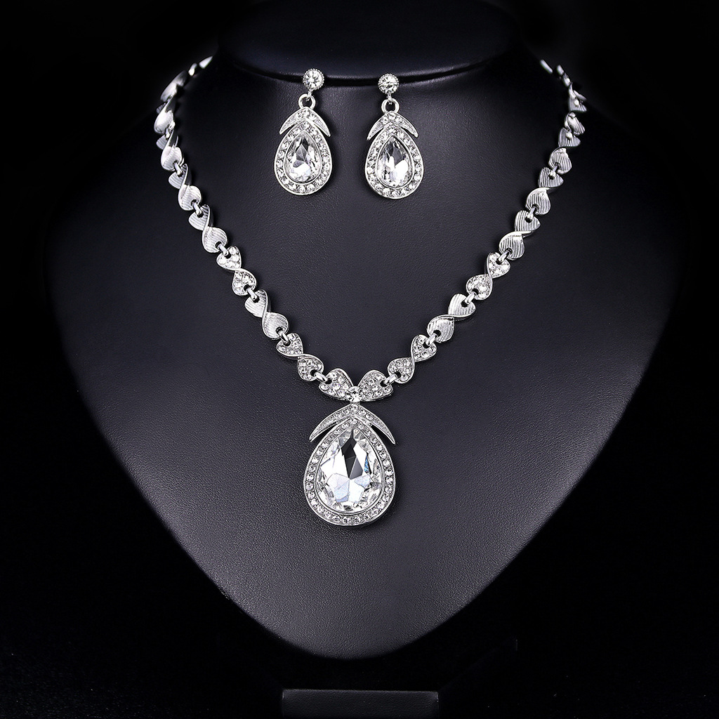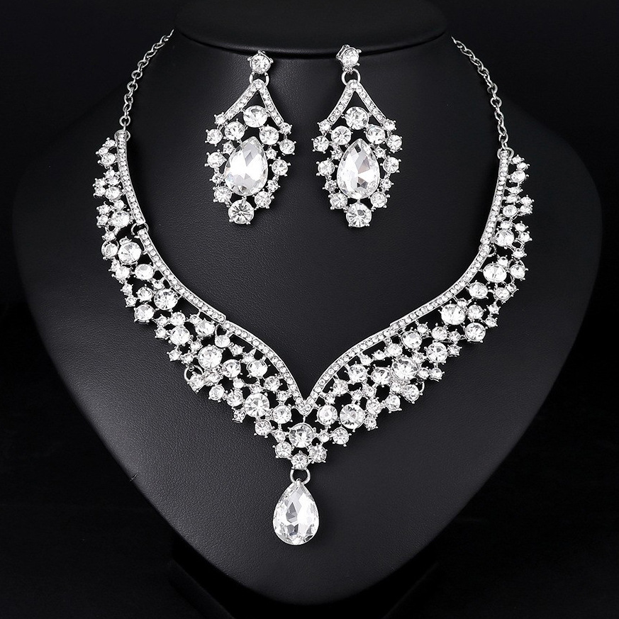跨境专供新娘项链套装 欧美婚礼搭配耳环项链首饰两件套饰品套装
