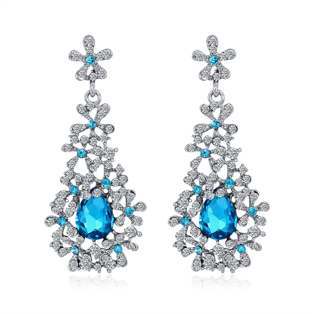 欧美时尚气质合金镶钻耳环新款个性镂空新娘结婚耳饰厂家供货花卉