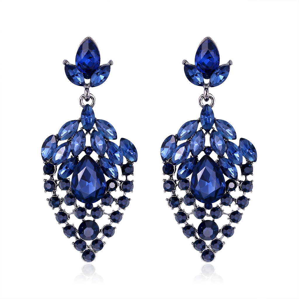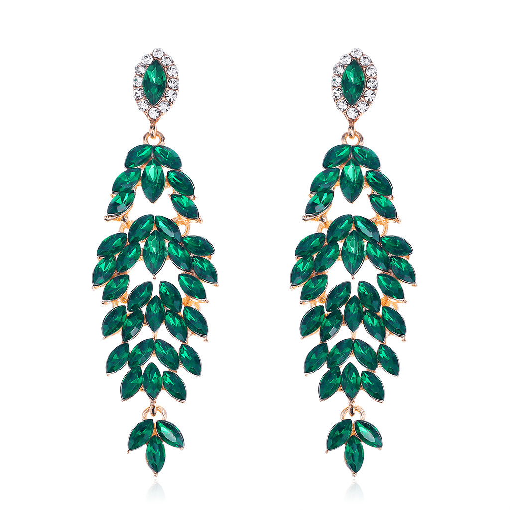 新娘饰品 新款欧美复古合金镶钻彩色宝石流苏耳环 厂家现货