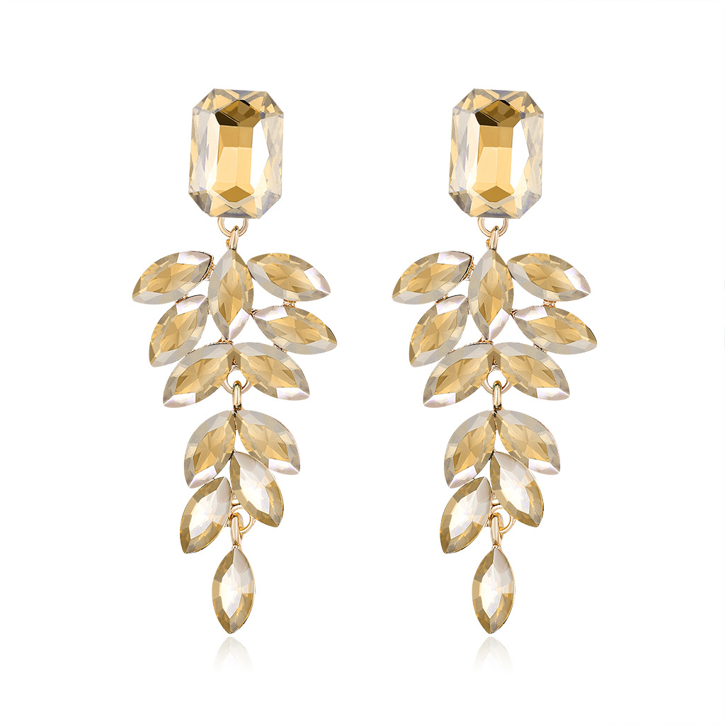复古新款时尚几何流苏水晶耳环 合金镶钻玻璃欧美耳饰 厂家现货