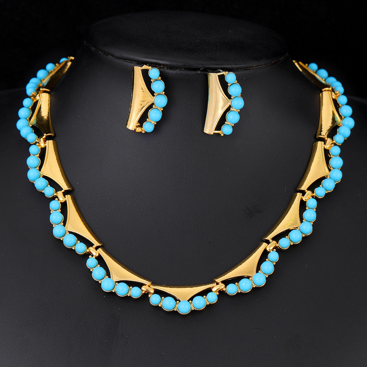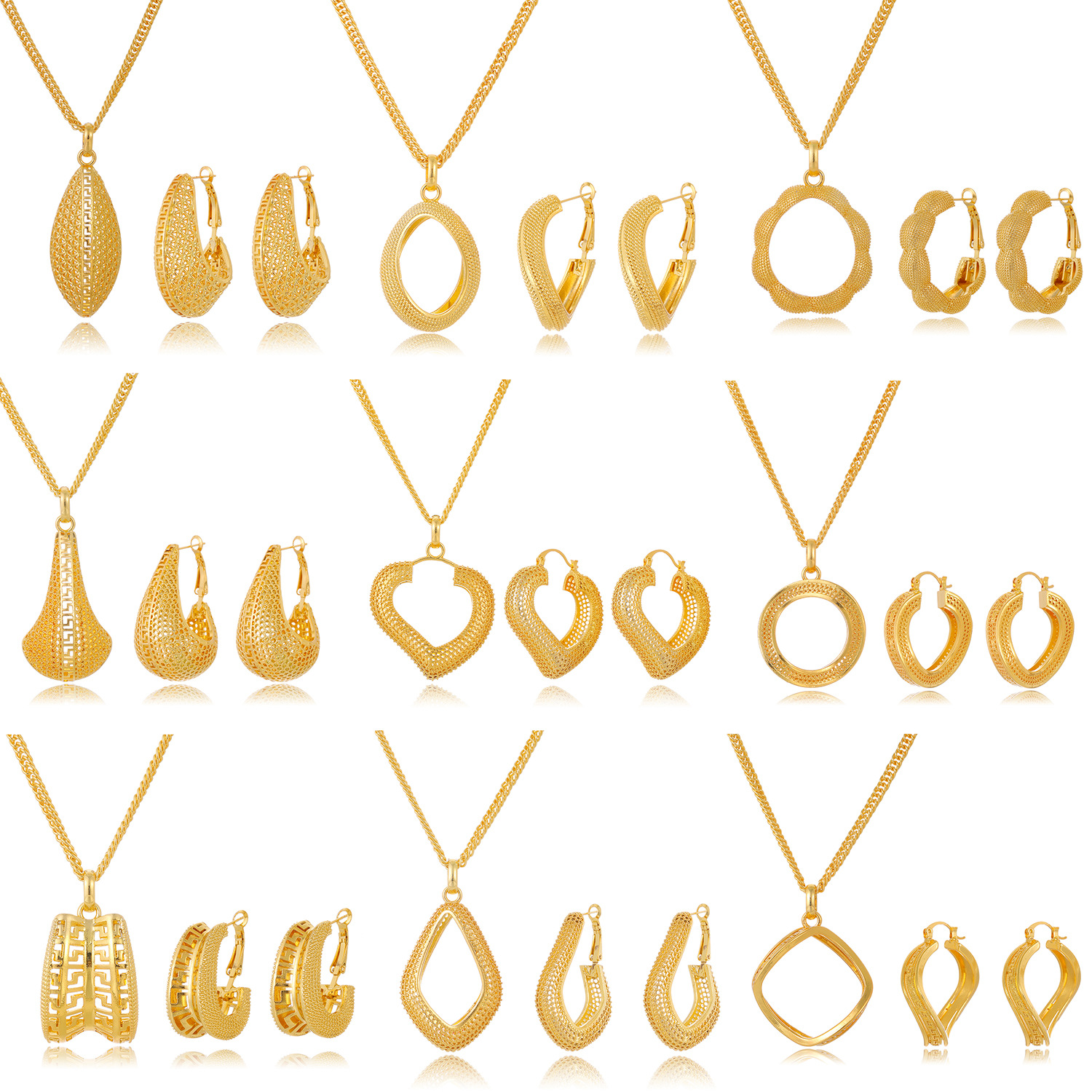 项链跨境沙金耳环套装外贸跨境两件套24k金饰品欧美新娘首饰套装