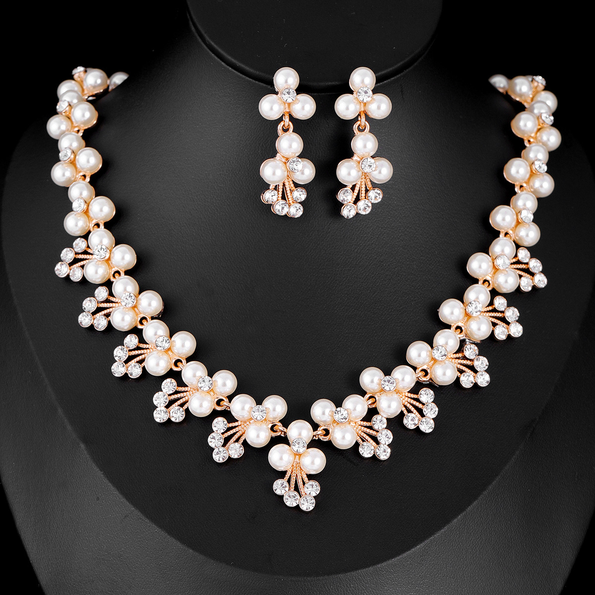 珍珠镶钻短款项链耳环套装时尚网红新娘伴娘婚庆礼服配饰项链水钻