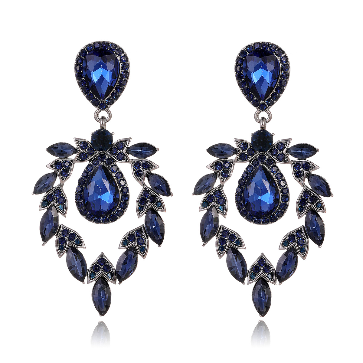 复古彩色水晶耳环 欧美合金镶钻宝石流苏耳坠 新娘婚礼派对耳饰