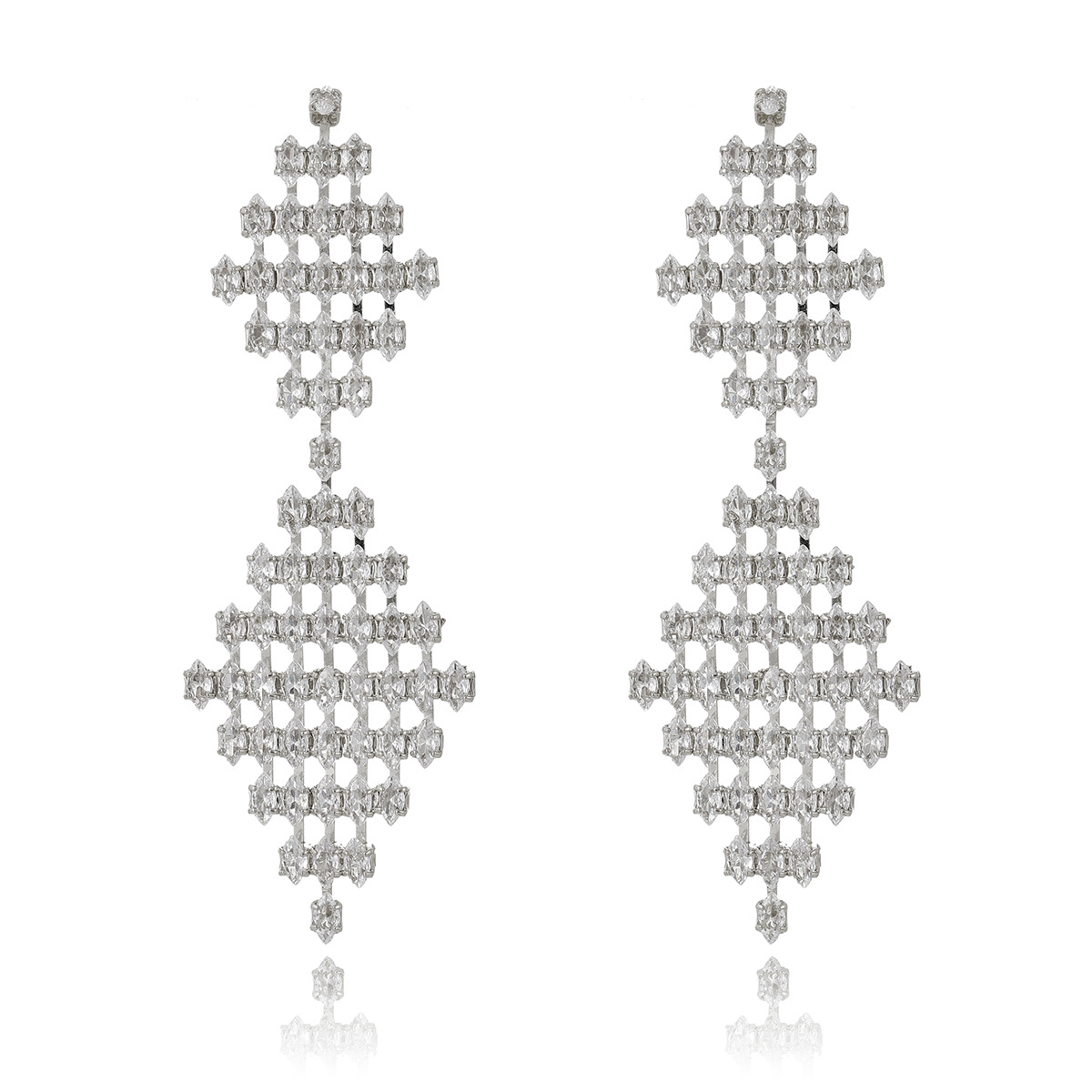 精致奢华几何菱形超闪满钻长款耳坠小众设计感不撞款时尚吊坠耳环