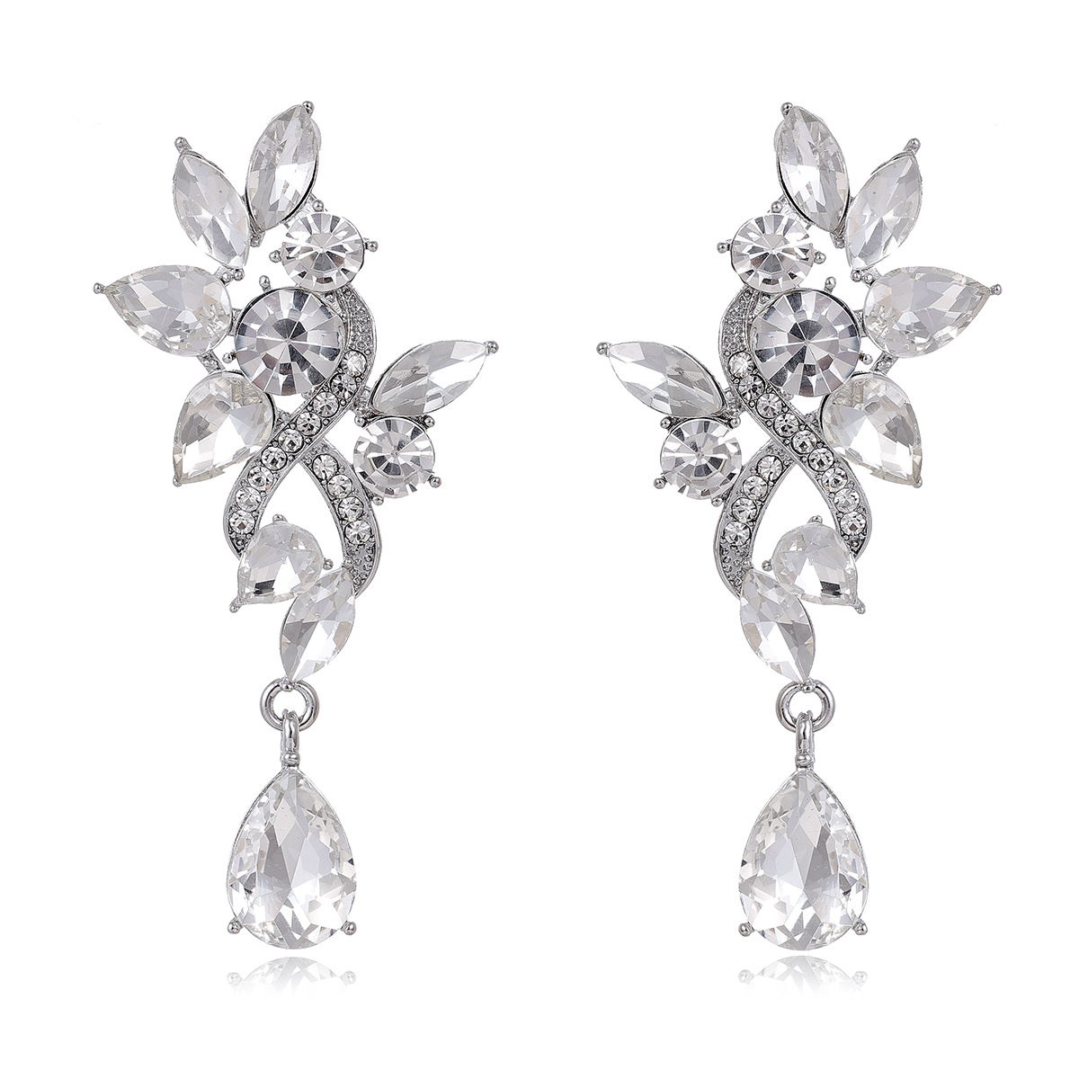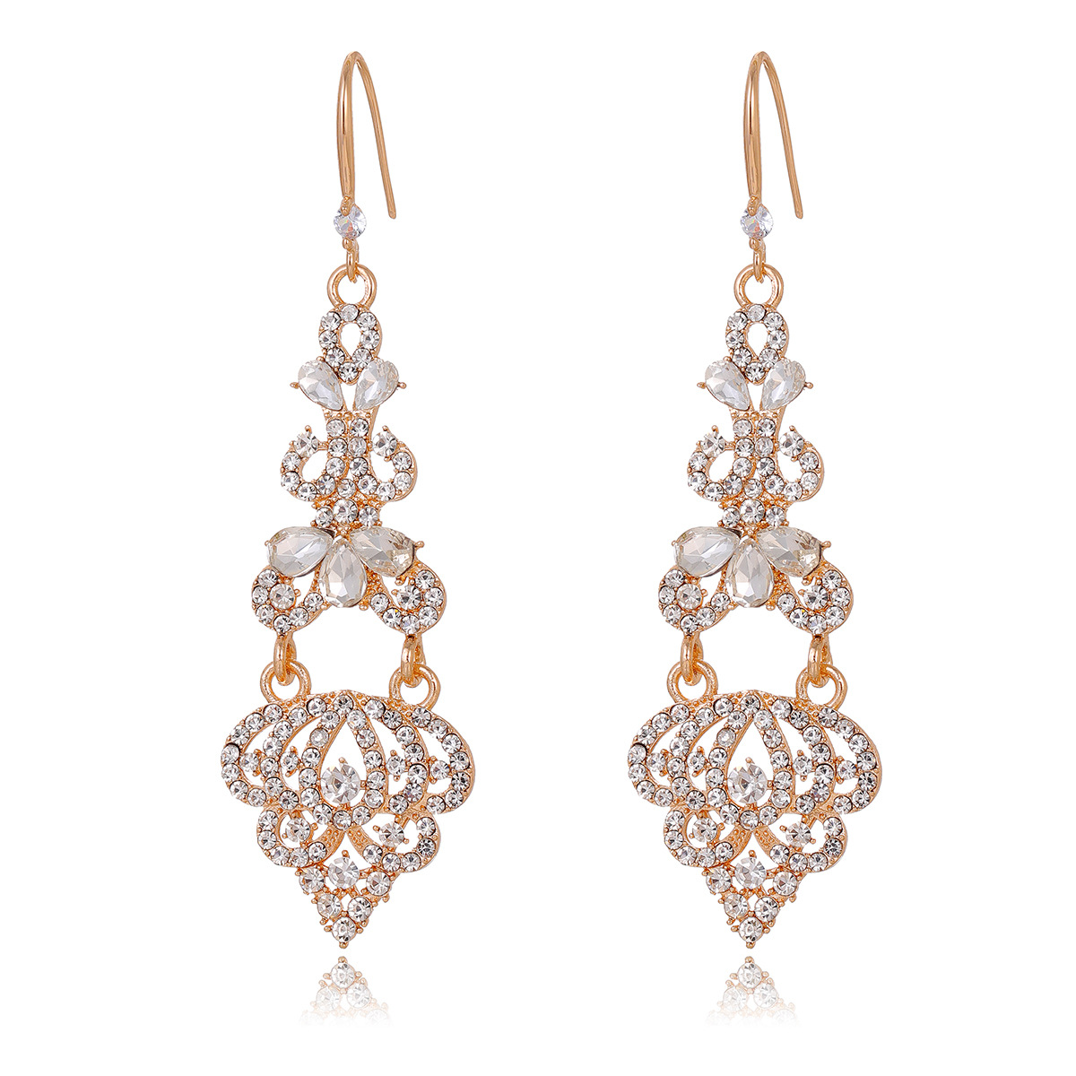 新款欧美耳环时尚百搭奢华镶钻水滴耳环复古新娘耳饰服装配饰闪钻