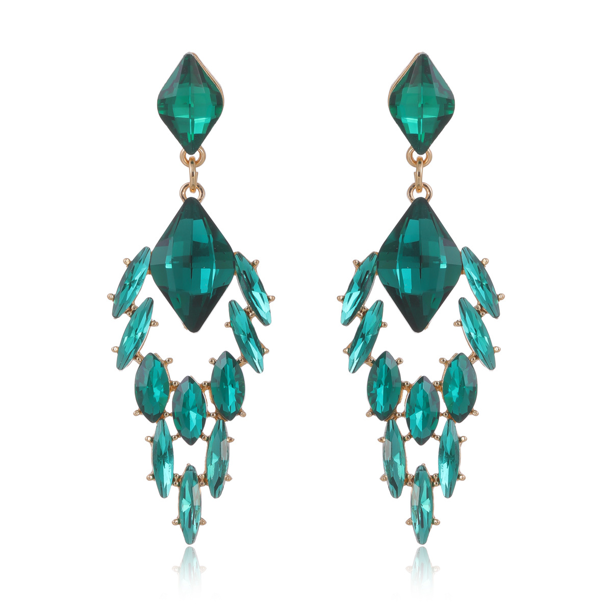 新款欧美时尚复古水滴形耳饰祖母绿宝石耳环女宴会百搭气质耳饰