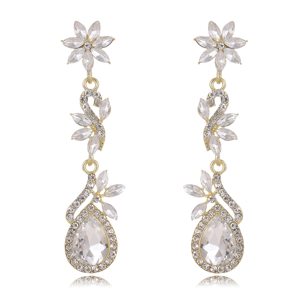 欧美长款水滴水钻耳环饰品跨境速卖通爆款婚礼新娘礼服耳坠耳饰