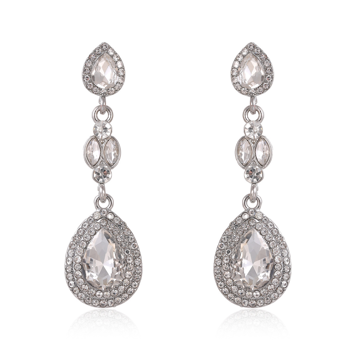 欧美长款婚礼新娘水钻对称耳环跨境Wish速卖通亚马逊爆款耳坠耳饰