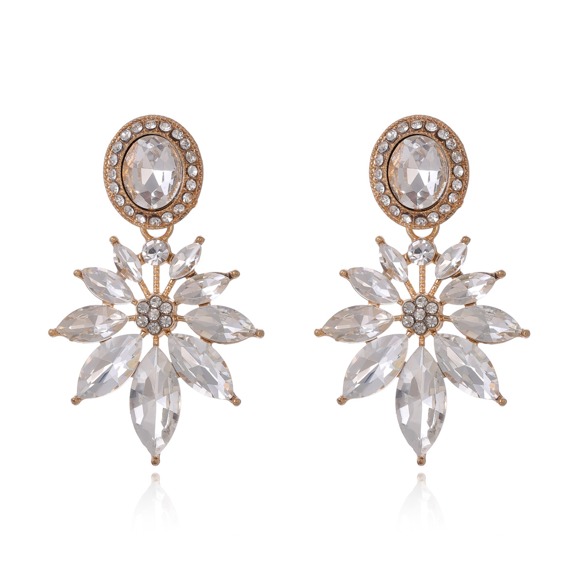 欧美跨境夸张爆款耳环水晶复古大花朵个性时尚街拍潮流合金耳饰女