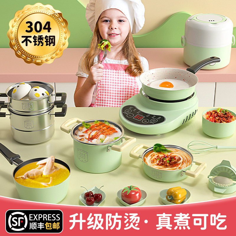 子供用ミニキッチンリアルクッキングフルセットリアルバージョンクッキングと食べられるキッチン用品おもちゃ女の子の誕生日プレゼント