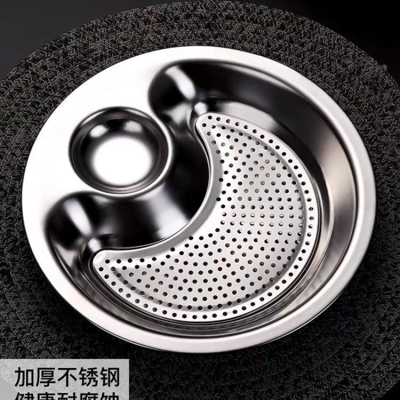 新型304ステンレス二重餃子皿水切り円形家庭用餃子館多機能付料用皿