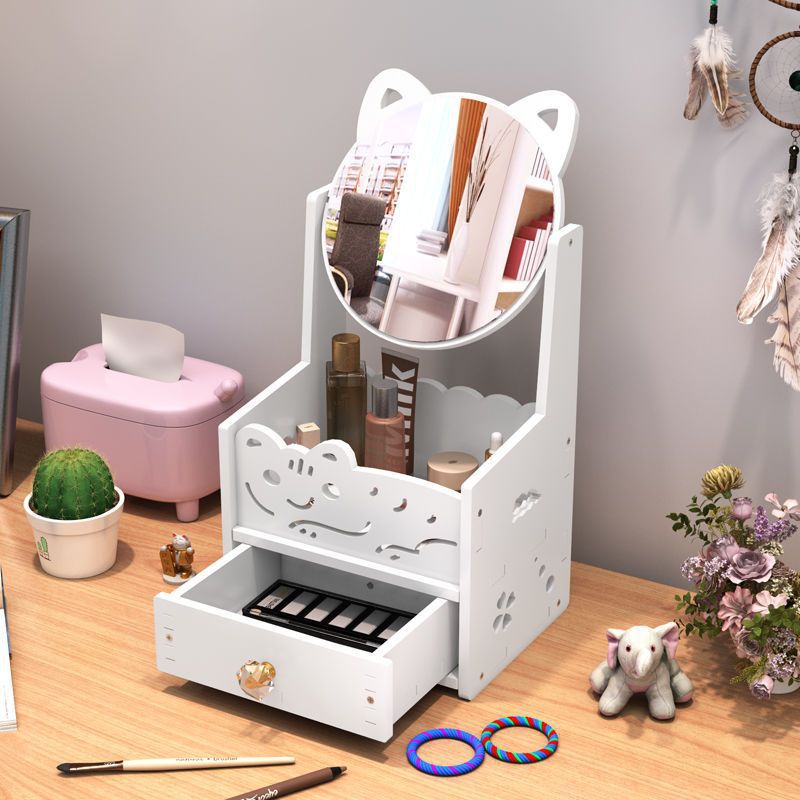 ミラー引き出し付き収納付き一体簡易ドレッサーデスクミラー寮お風呂女の子かわいい化粧鏡
