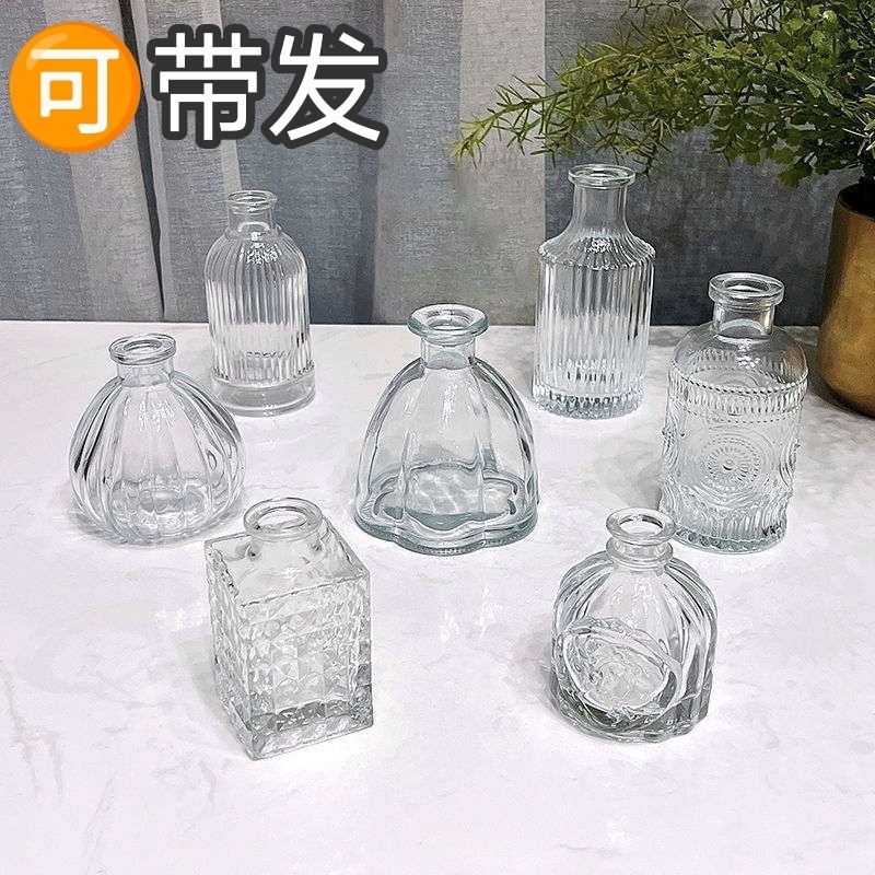 フレンチレトロレリーフガラスミニ花瓶ins風透明水培生け花花瓶デスクトップ装飾置物