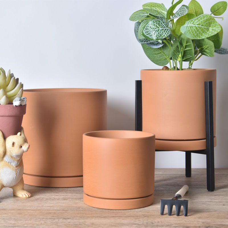 赤陶の植木鉢の円柱形のトレー付きの多肉の緑のロリは簡単で新鮮なサボテンの陶磁器の泥の瓦のたらいを植えて空気を通して吸水します。