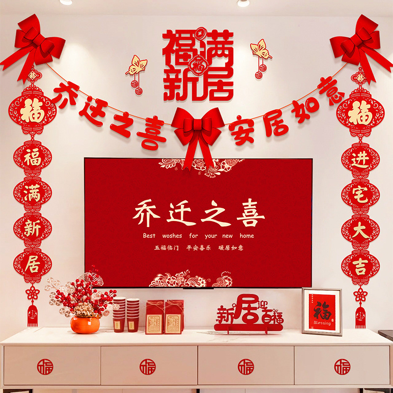 新居に引っ越してリビングテレビの背景壁の装飾用品を配置します。