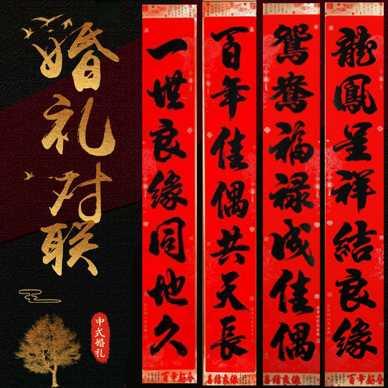 結婚対聯喜聯の黒い字の婚姻聯の新婚の玄関は男性の方に対して結婚します。