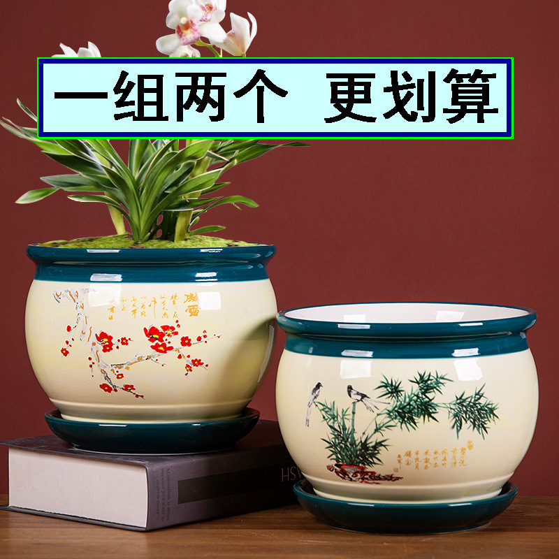 植木鉢陶磁器在庫一掃処理大口径新中国式創意シンプル緑羅蝶蘭多肉盆トレイ付き