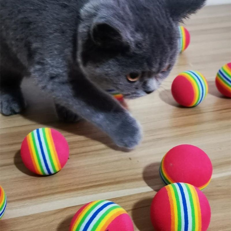 猫のおもちゃの虹のボールの小さい弾力の中実の静音の歯磨きの歯は猫のインタラクティブなペットのおもちゃの大きいサイズの猫をからかいます。