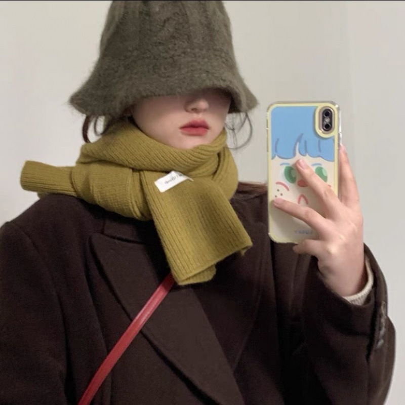 東大門の新型ins純色ニットマフラー女性冬韓国小清新百合保温日系マフラーカップル