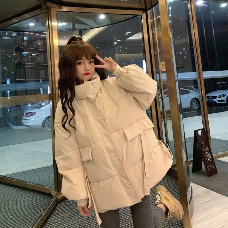 2024冬の新型韓国版は腰の小さい子を収めて厚い綿服の綿服のパン服の立襟のコートの綿入れの女性BFを厚くします。