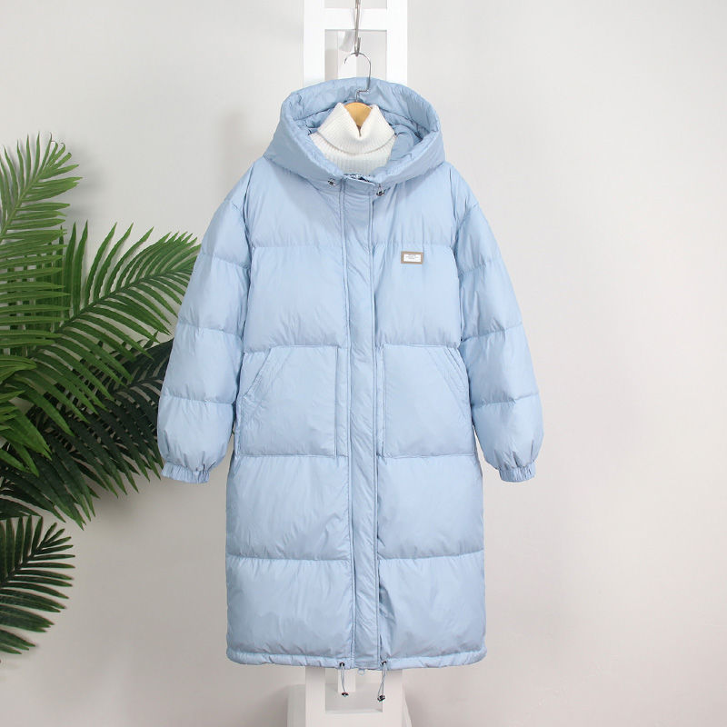 2024年韓国版のダウンジャケットの女性の中で長いサイズのゆったりした大きいサイズの白鴨の絨毯は厚い膝を越えてパンの服を着て帽子のコートをつないでいます。