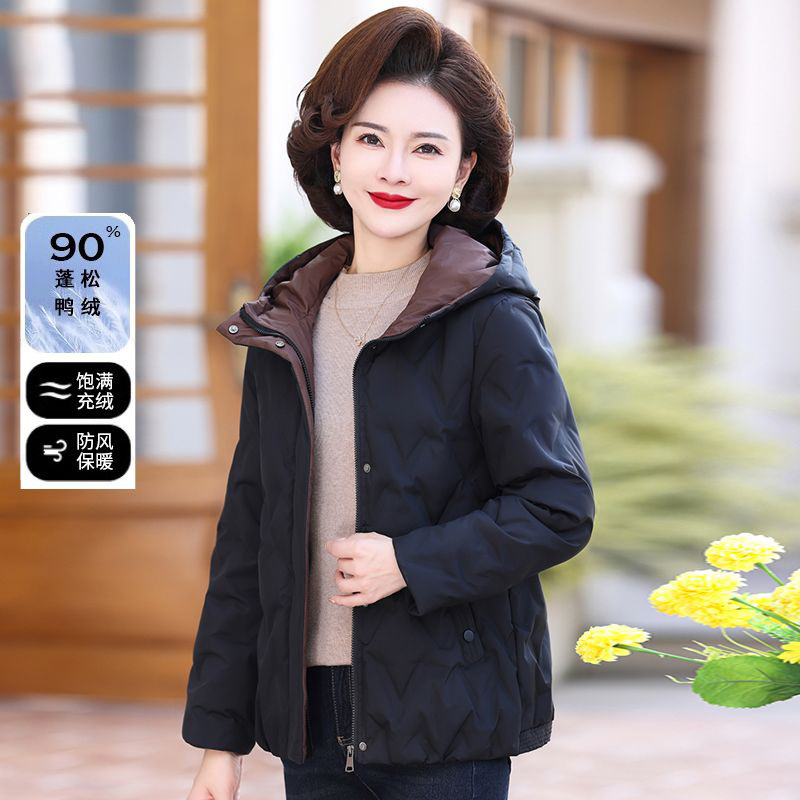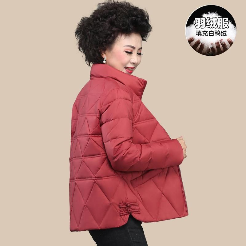 母の短いダウンジャケットの女性ファッションは軽薄で高級な洋気白鴨パイル冬の中高年は保温コートを厚くした