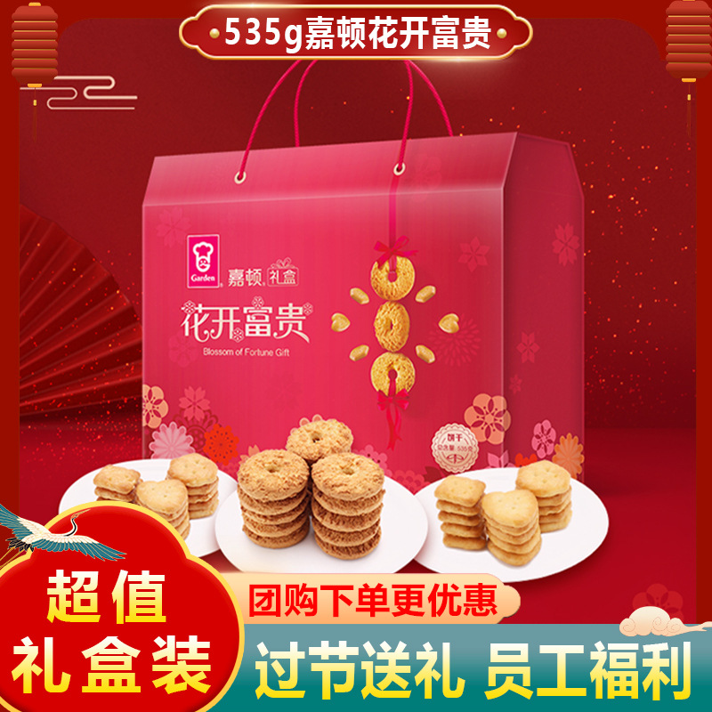 嘉トン小円ビスケットミルク味ギフトボックス花開富貴535g紅箱喜餅年用品ギフトボックス祭り小包装