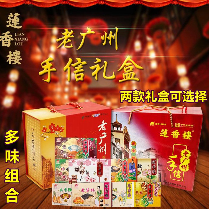 蓮の香楼の古い広州の特産品はセットのハイエンドの贈り物箱から広東の特産品の軽食を提供します。