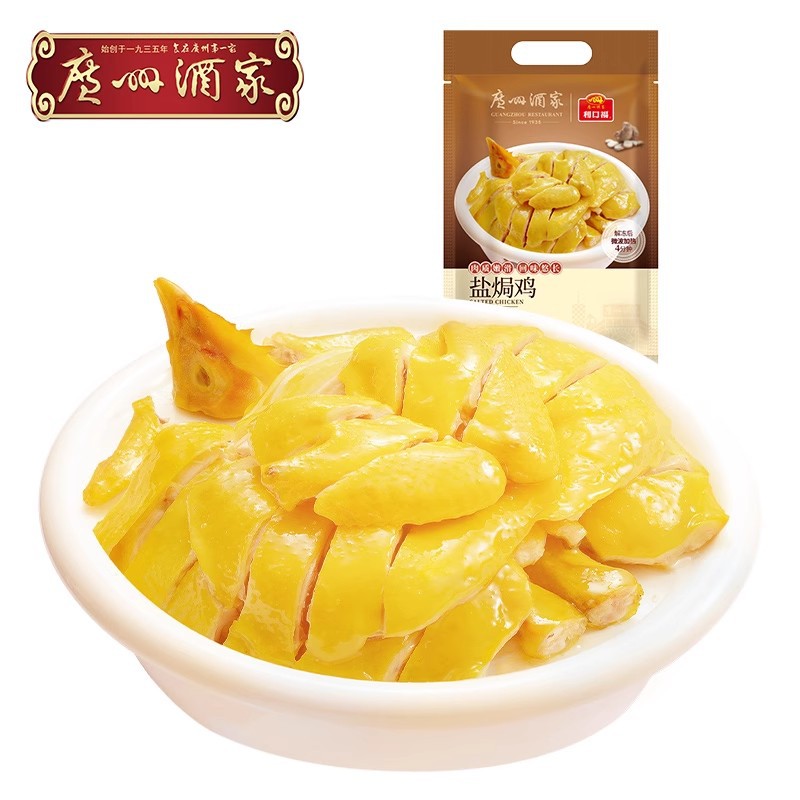 広州の酒家の塩のニワトリの520gの広東の便利なインスタントの半完成品の料理は加熱してインスタントの広式の白が手を切って鶏を引き裂きます。