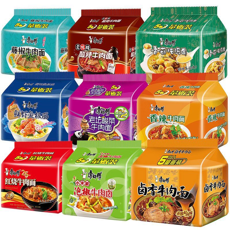カップラーメン袋入り康師傅インスタントラーメンクラシック藤椒赤焼牛肉麺5連包インスタント夜食夜全箱30袋