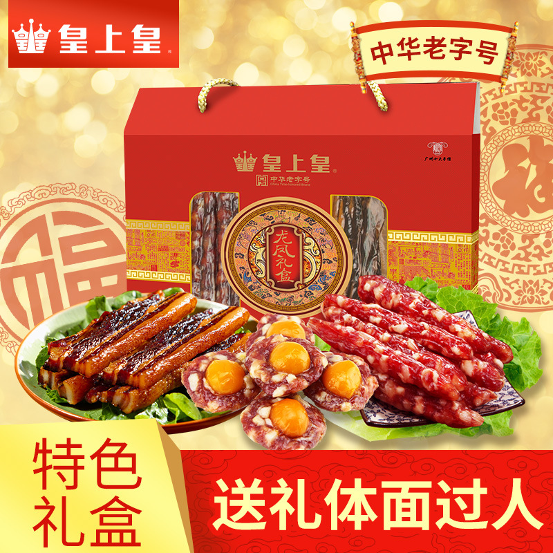 皇帝の竜鳳のベーコンの味のギフトボックス950gは広東の広式のソーセージのベーコンの卵の杯の年の品物を詰めてギフトボックスに送ります。
