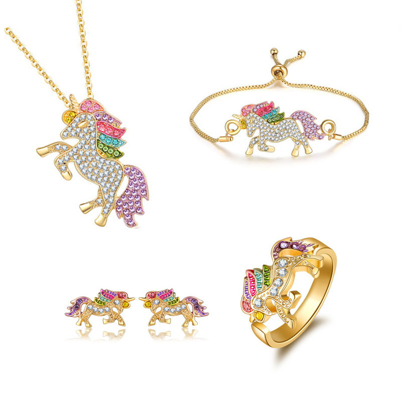 アマゾンの新しいユニコーンのポニーリングのブレスレットのネックレスのピアスのカラーのポニーセットの卸売り