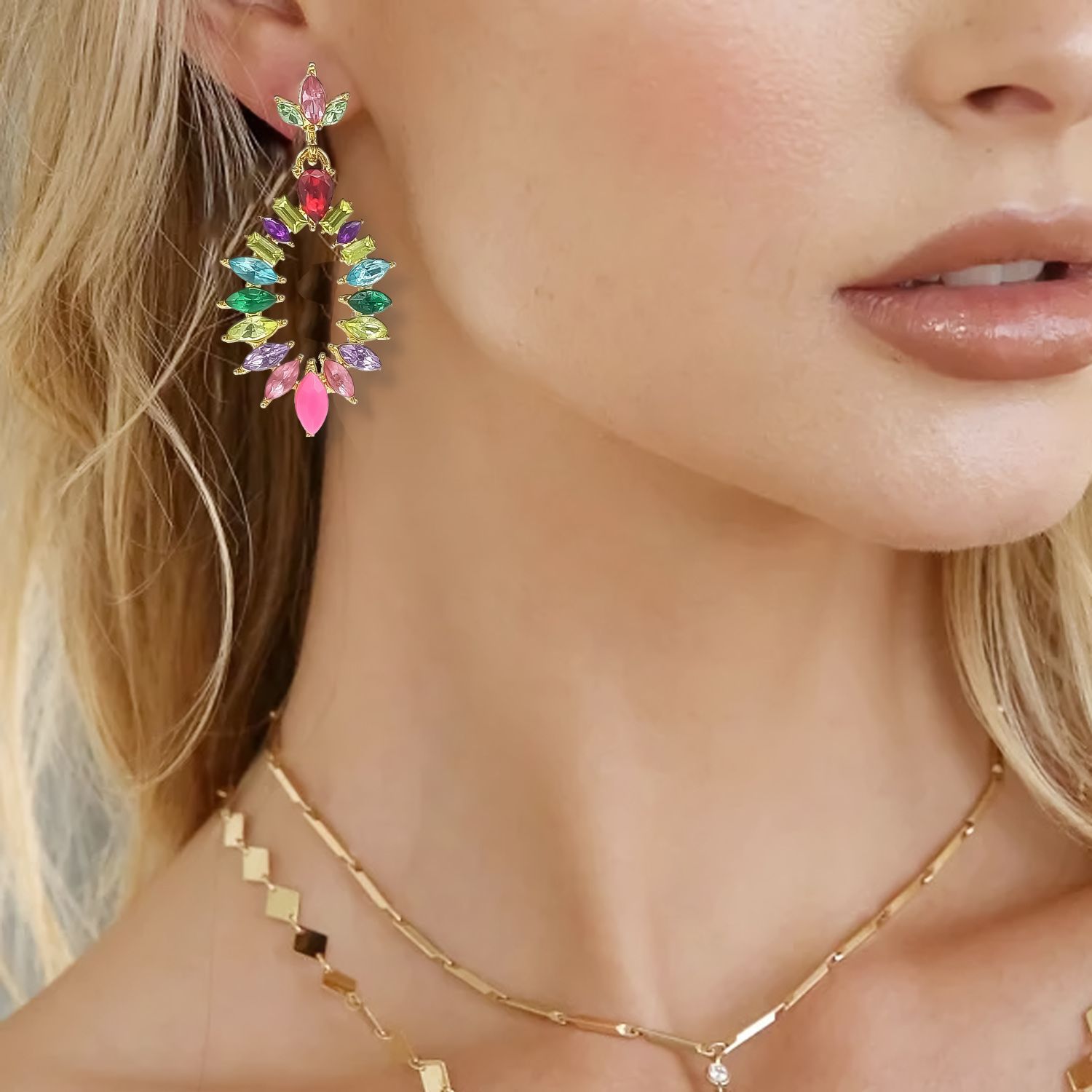 Zibiクロスボーダー新作カラーダイヤモンドイヤリング、シンプルな気質、誇張された中空ドロップ型イヤリング、軽い高級宴会イヤリング