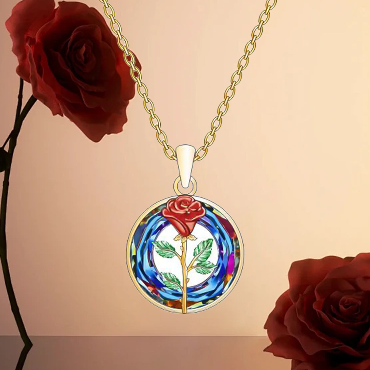 アマゾンの祝日のペンダントの青い丸い生命の木の赤いバラの緑の葉のバレンタインデーのネックレスのアクセサリー