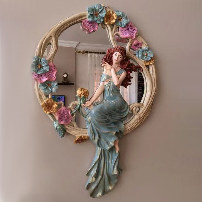 国境を越えた庭に比べて美しい鏡の壁の樹脂工芸品を飾っています。