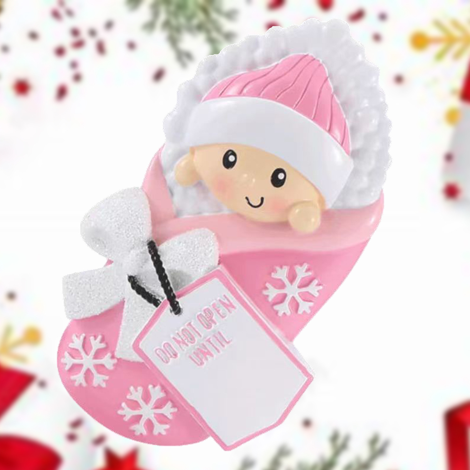 ピンクの子守帯の赤ちゃん樹脂ストラップは、赤ちゃんの最初のクリスマスの祝日を祝う小さなプレゼントです