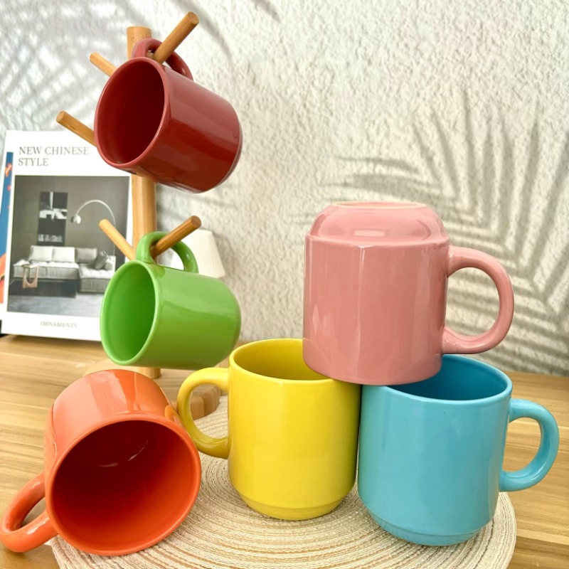 クリエイティブなカラフルなセラミックスタッキングカップコーヒーカップギフトカスタムロゴカップルウォーターカップマグ