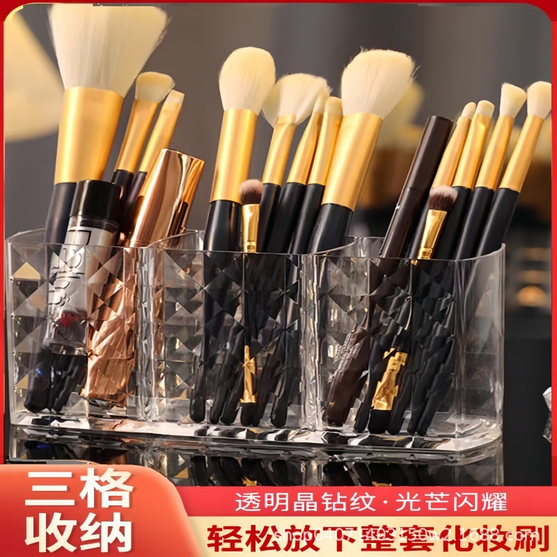 透明アクリル収納ボックス高颜値デスクトップ化粧ブラシ収納筒シンプル大容量水晶透明三格