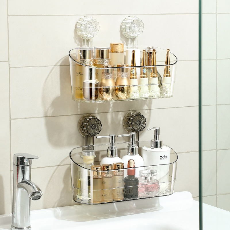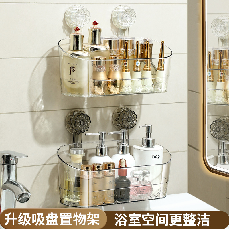吸盤付きの新しいバスルーム収納ラック、透明アクリル収納ラック、シャンプーシャワー収納ラック