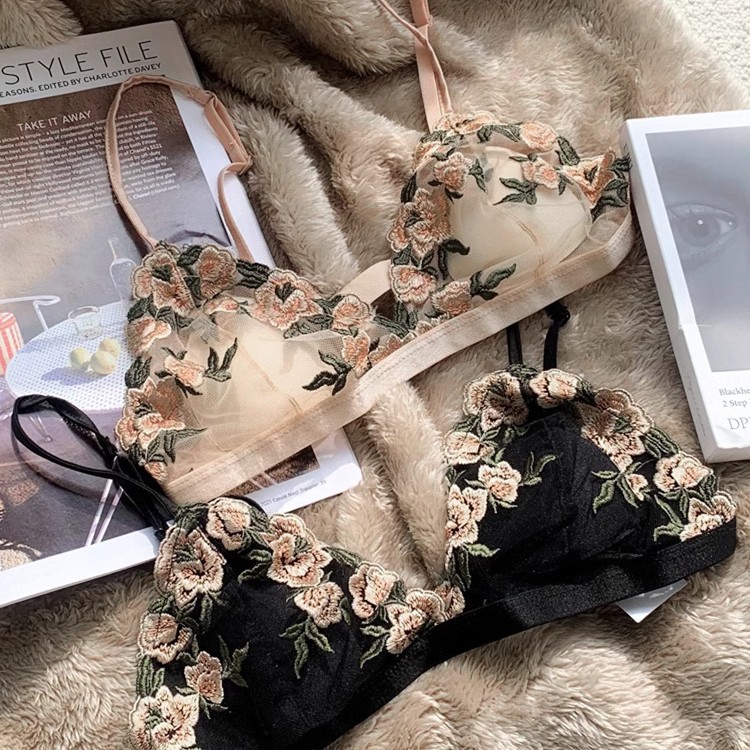 フランス式のセクシーな困惑の純粋な欲の超薄いレースの少女の下着の無鋼の輪のネットの糸のbraの三角の杯のブラジャーのスーツ