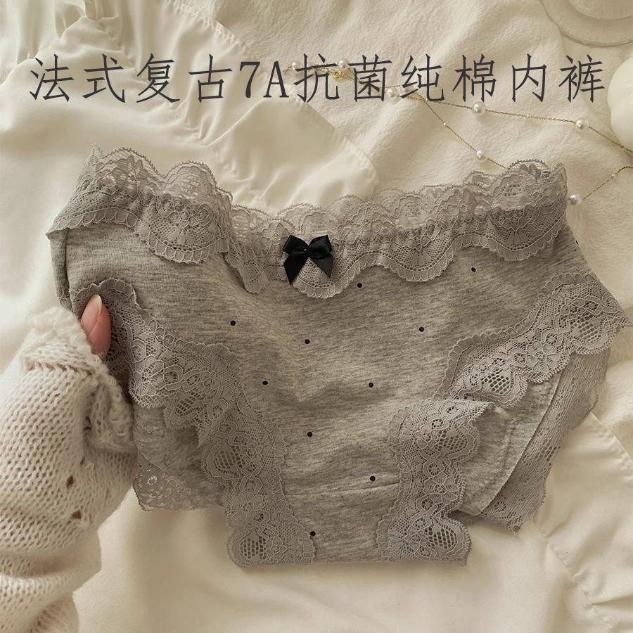 フランスの復古風レースの縁の女性のかわいい三角のズボンの2025年の春夏の新型の下着の女性の純綿の股