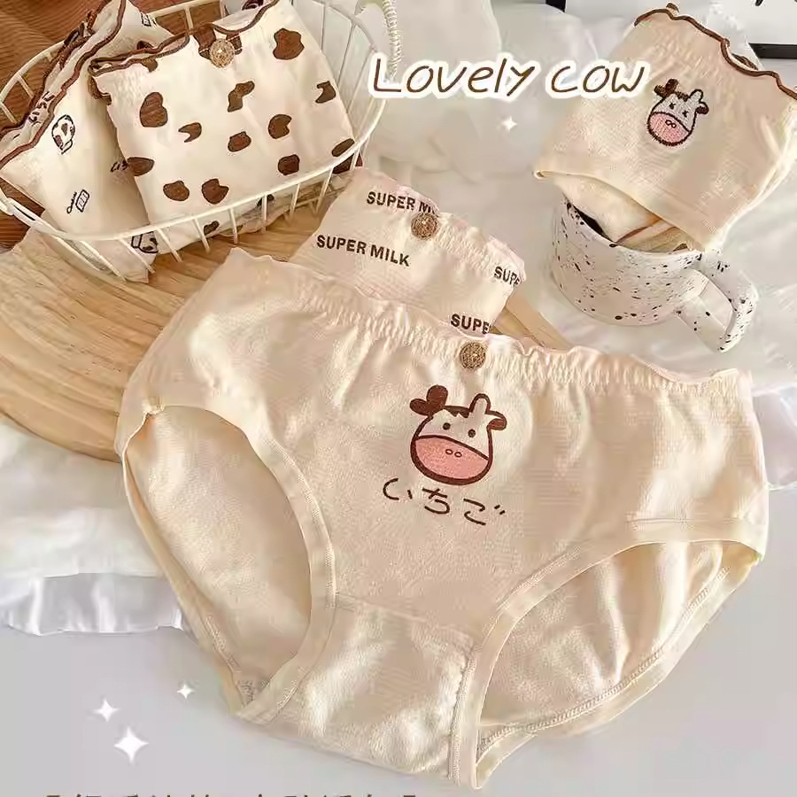 日本のミルクの牛の紋様の少女の下着の純綿の底の股の韓系のinsのかわいい甘くて甘い抗菌の女性の三角のズボン