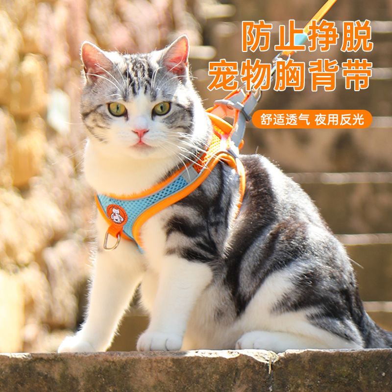猫牽引ロープベスト式通気反射胸ストラップ猫ロープペット牽引ロープペット用品